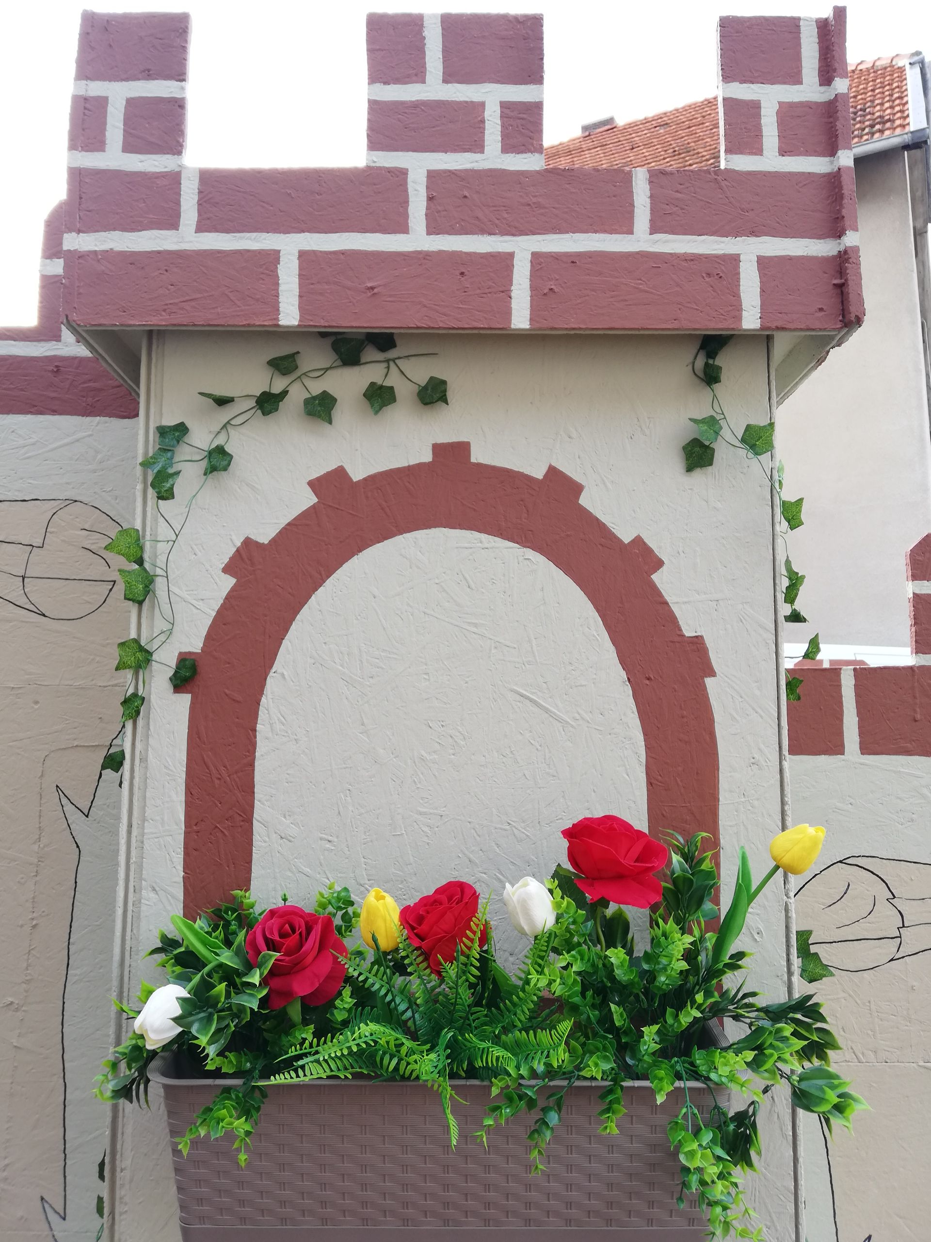 Nach dem Anstrich sowie vielen künstlerischen und liebevollen Details erhielt die Burg noch farbenfrohe Blumen vor den Fenstern und authentische Efeuranken rund um die Burgmauern.
